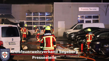 Bei Eintreffen der ersten Einsatzkräfte der Freiwilligen Feuerwehr Groß Niendorf ging ein Trupp unter schwerem Atemschutz zuerst zum auf dem Gehweg liegenden IBC Behälter vor. Da aus diesem Behältnis kein Gefahrstoff austrat und daher keine weitere Gefahr bestand verlegten die Kräfte weiter zum Betriebsgelände.
