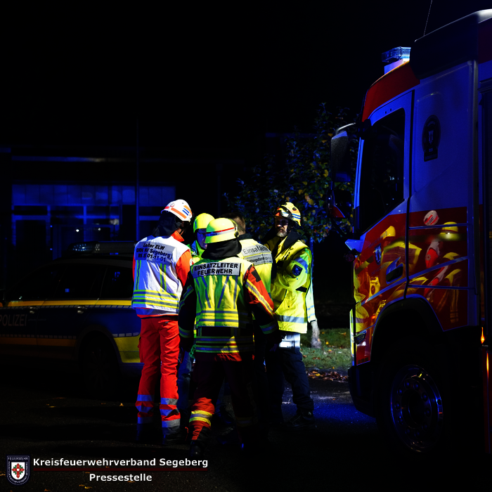Der Einsatzleiter erhöhte daraufhin das Stichwort auf FEU G R10 (Feuer, größer als Standard, Großeinsatz Rettungsdienst, 6-10 verletzte Personen), da insgesamt acht Personen betroffen waren. Zur Unterstützung wurde die Freiwillige Feuerwehr Henstedt-Ulzburg mit ihrem Hubrettungsfahrzeug nachalarmiert.