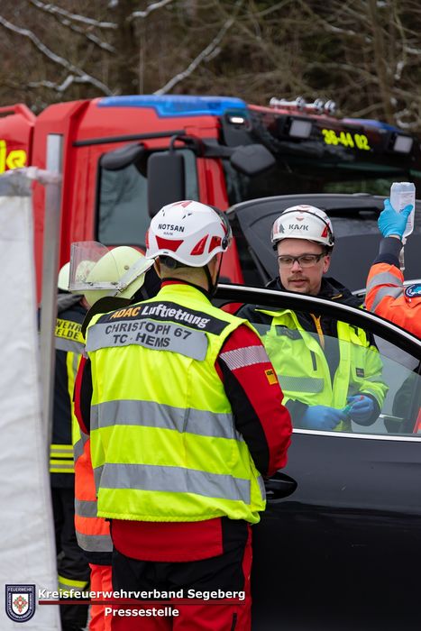 Nach Abschluss der technischen Rettung wurde der Fahrer zur weiteren Versorgung an die Besatzung des Rettungshubschrauber Christoph 67 übergeben und in ein Klinikum der Maximalversorgung geflogen.