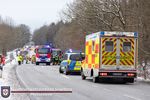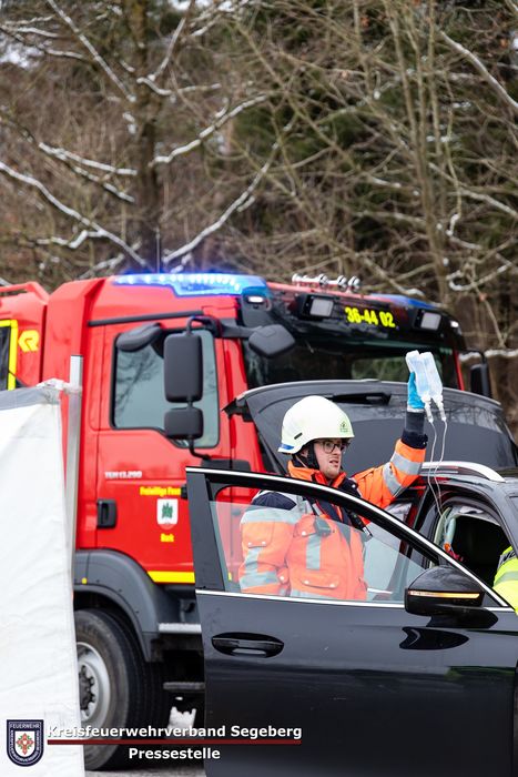 Erste Anrufer schilderten zwei beteiligte Personenkraftwagen, die in einen Frontalzusammenstoß verwickelt seien, ein Fahrzeuginsasse wäre infolgedessen im Unfallfahrzeug eingeklemmt. Um 13:32 Uhr alarmierte die Kooperative Regionalleitstelle West die Freiwilligen Feuerwehren aus Bark, Bockhorn, Hartenholm, Todesfelde sowie die Führungsunterstützungsgruppe zusammen mit dem Rettungsdienst und der Polizei mit dem Einsatzstichwort „TH Y“ (Technische Hilfeleistung, Menschenleben in Gefahr) zum gemeldeten Unfallort.