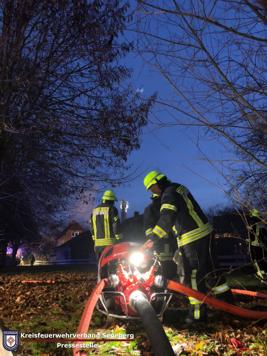 Einsatzkräfte der Freiwilligen Feuerwehr Ahrensbök unterstützen den Einsatz mit Atemschutzgeräteträgern.