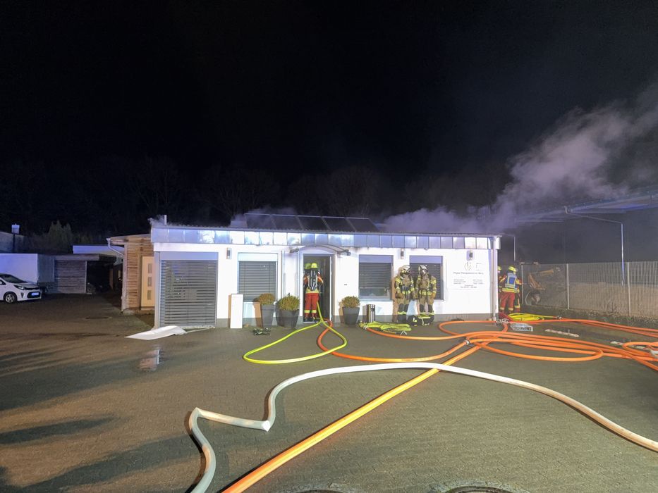 Bereits um 01:50 Uhr war das Feuer unter Kontrolle, jedoch dauerten die Nachlöscharbeiten an.
