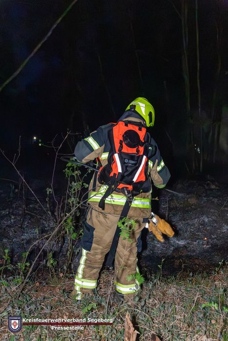 Mit einer anschließenden konstanten Wasserversorgung konnte das Feuer schnell mit mehreren handgeführten C-/ und D-Strahlrohren, dem Einsatz von mehreren Löschrucksäcken und Feuerpatschen an einer weiteren Ausbreitung gehindert werden.