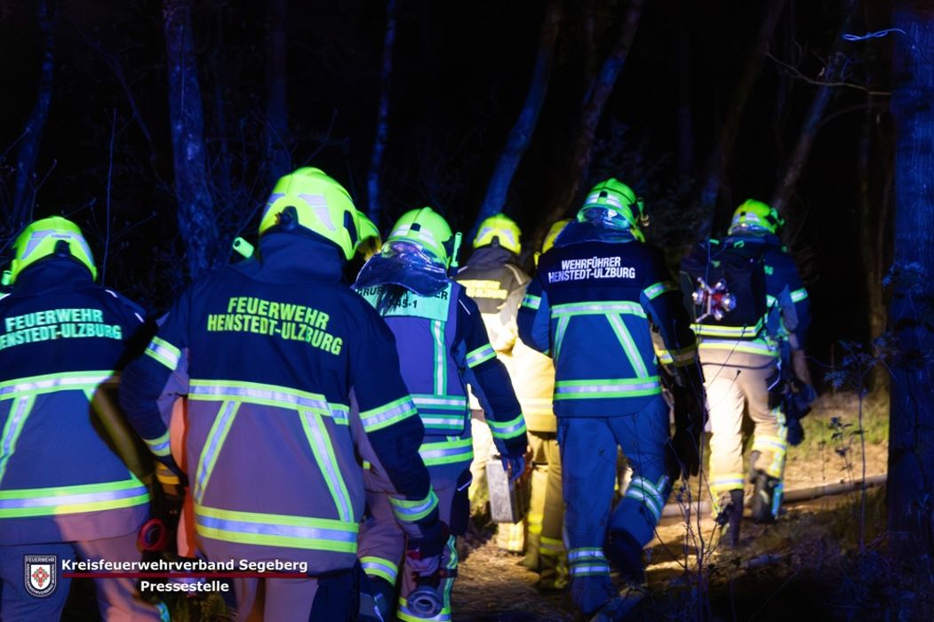 Anhand der neuen Informationen wurde um 20:59 Uhr das Einsatzstichwort auf „FEU 2“ (Feuer, zwei Löschzüge) erhöht und Vollalarm für die Gemeindewehr Henstedt-Ulzburg ausgelöst. Bereits auf der Anfahrt war die schwarze Rauchentwicklung sowie Flammenschein für die Einsatzkräfte sichtbar.